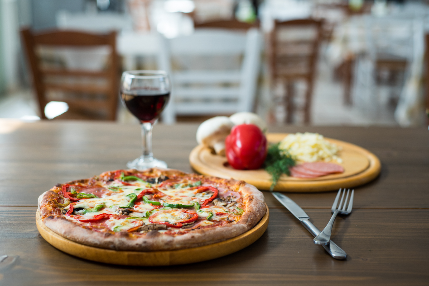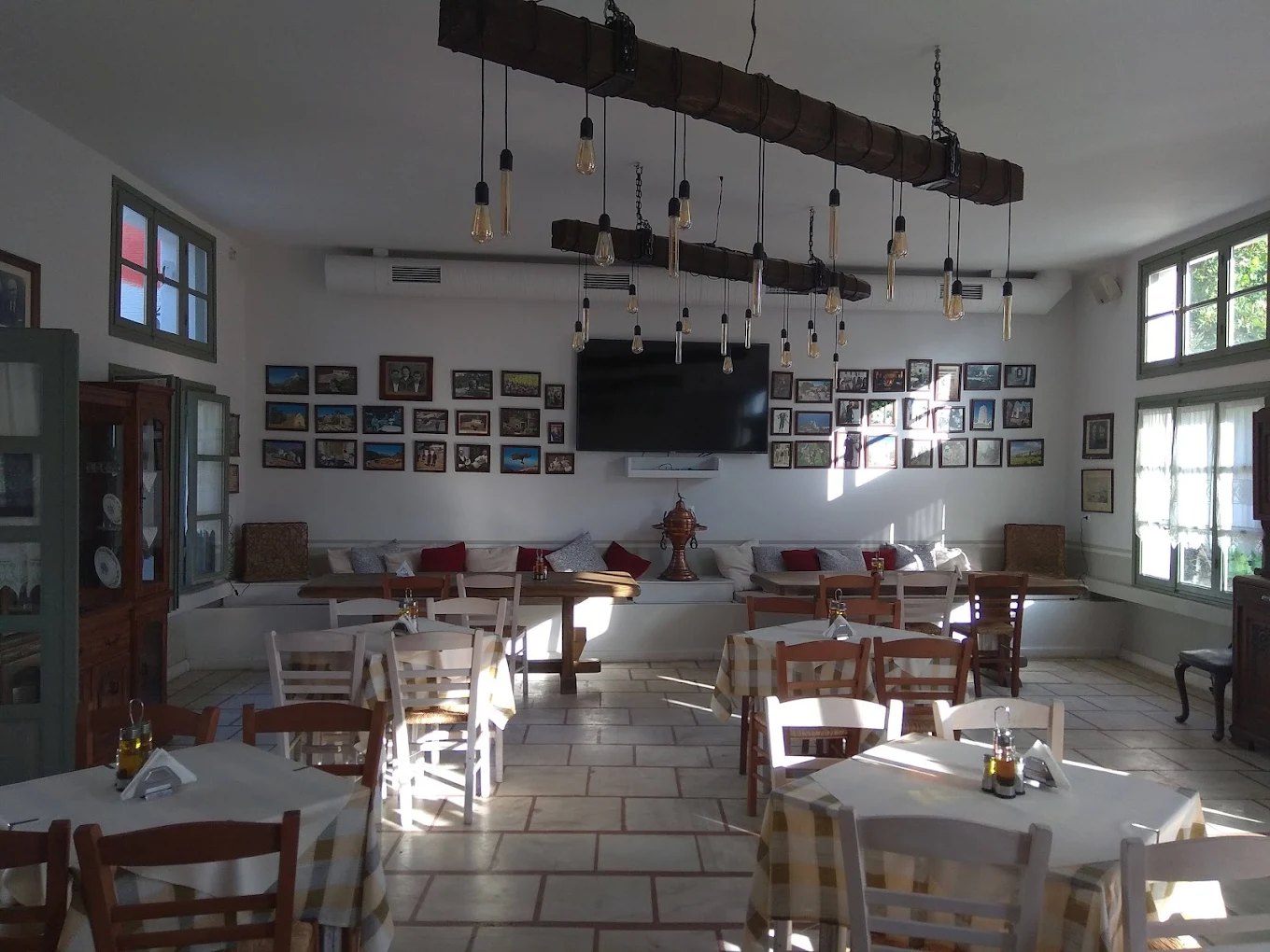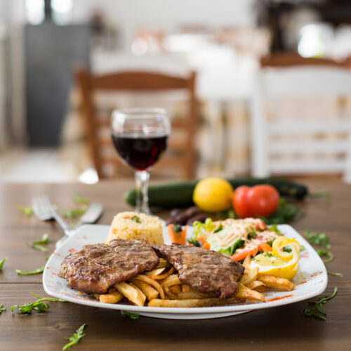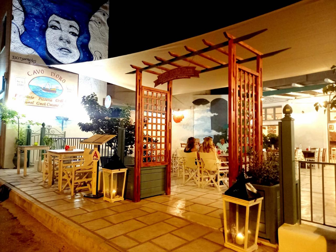 Here you can enjoy wood-fired pizzas, authentic Greek and Italian dishes, and fresh salads prepared with carefully selected local ingredients, all in a warm and welcoming atmosphere.